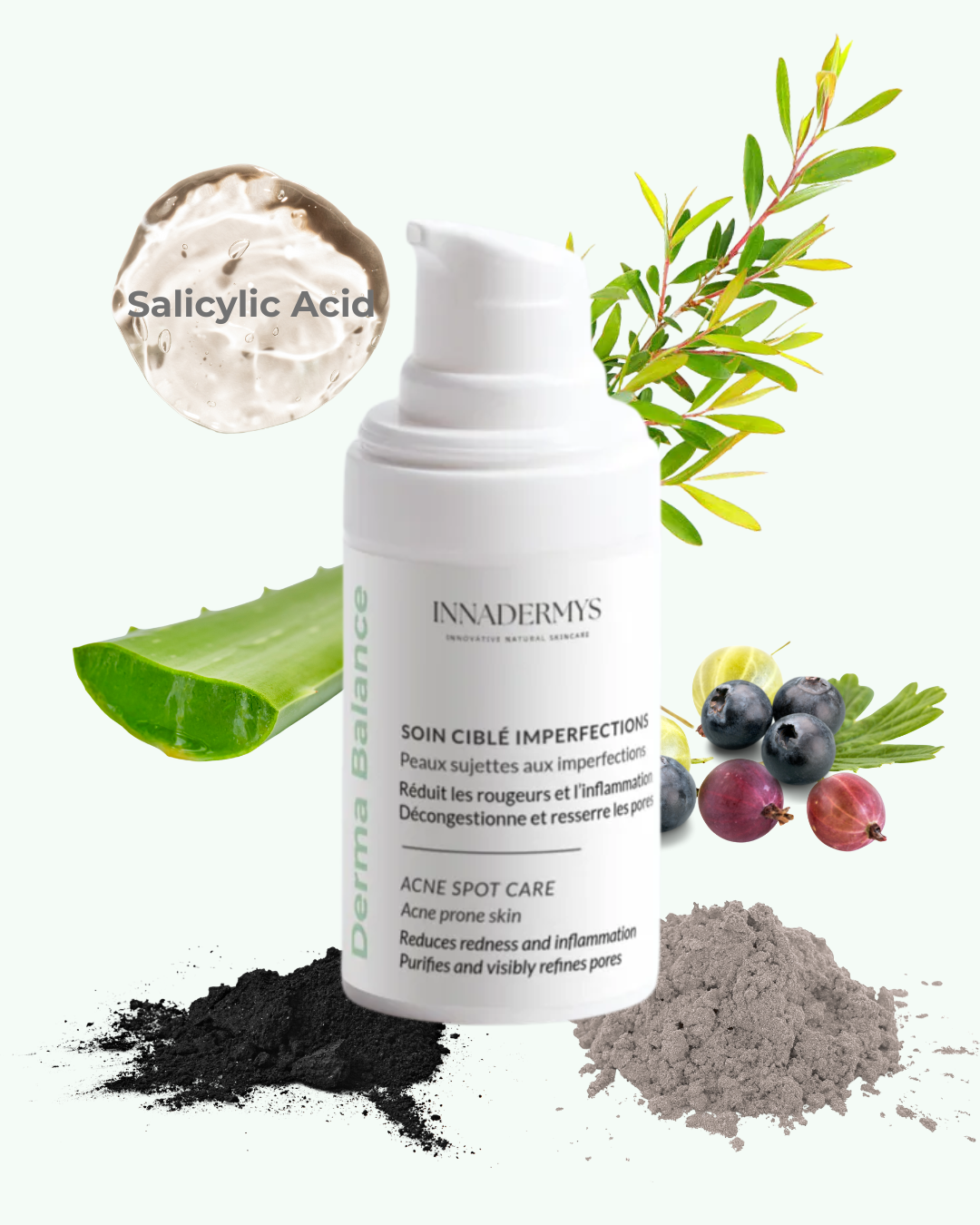 Ce soin est conçu pour une application localisée (boutons, zones rouges ou congestionnées). Pour un soin global de la peau mixte à grasse, il peut être associé à la Gelée Équilibrante Niacinamide de la gamme Derma Balance.