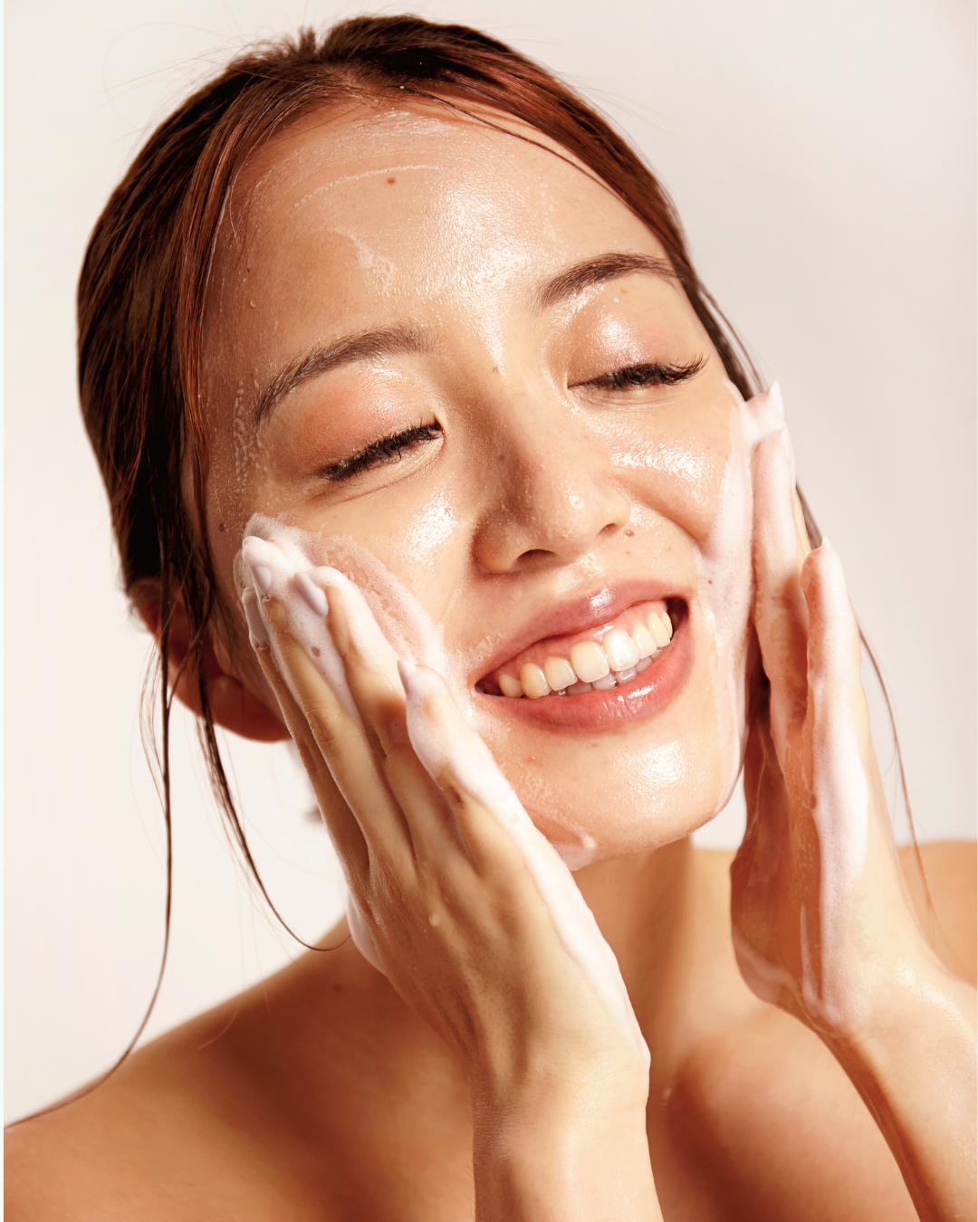 1. 💧 Prélevez une noisette de gel, faites mousser dans vos mains et appliquez sur visage humide.