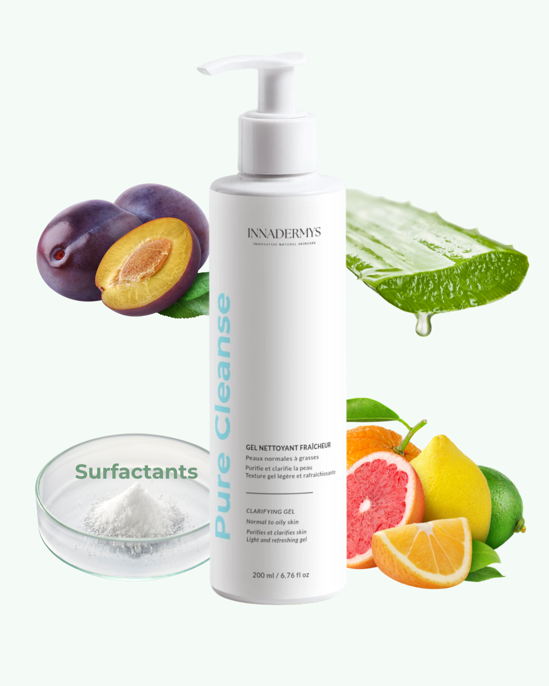 - Purifie et clarifie grâce aux surfactants doux et aux extraits de fruits, pour des pores désincrustés et un teint uniforme.