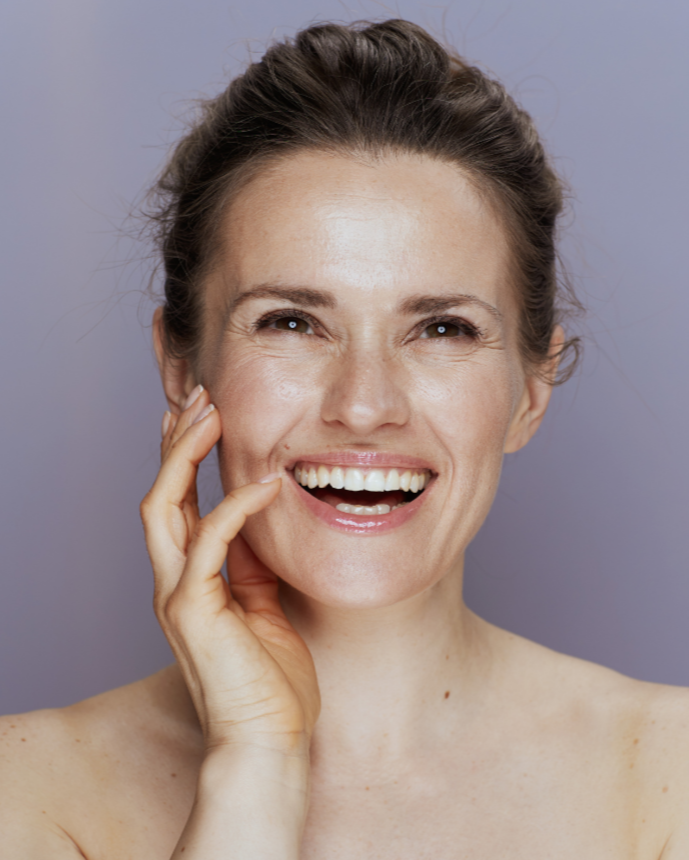 - Appliquez en douceur du centre du visage vers l’extérieur, jusqu’au cou.