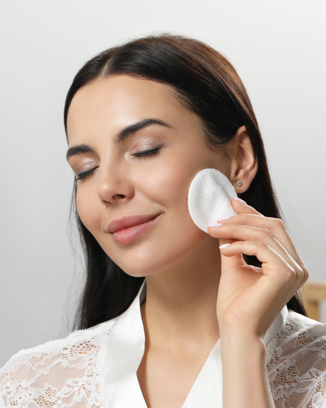 - Imbibez un coton réutilisable de la Pure Micellar Cleanse Water.